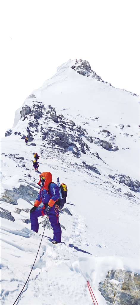 這份冷靜沉淀自20多年的攀登生涯。從協(xié)作隊員到修路隊隊長兼向?qū)В榉逵谒?,早已不是挑?zhàn)的舞臺,而是需要反復(fù)“精讀”的教科書。20次登頂背后,是20多次與危險周旋?!爸榉鍙牟粫A(yù)警‘最危險’,考驗總是突然到來?!倍嗉稳收f。