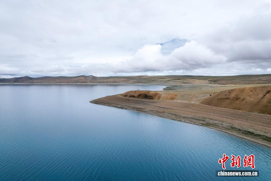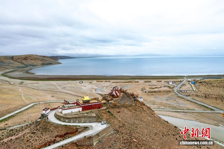 7月22日,航拍拉昂錯夏日風光?,斉杂哄e與拉昂錯位于西藏阿里地區(qū)普蘭縣境內(nèi),兩湖僅有一堤之隔,卻擁有不同的地理特征和咸淡水之分,因而分別被譽為“圣湖”與“鬼湖”。(無人機照片)中新社記者 張祥毅 攝