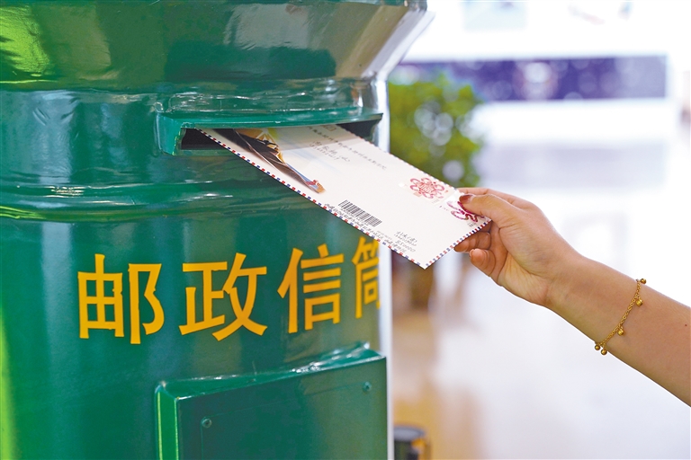 圖為游客在郵政服務(wù)點(diǎn)選購明信片?!∮浾摺∴嵆H荨z