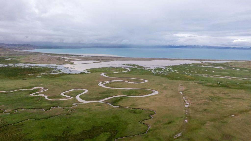 2025年7月22日拍攝的瑪旁雍錯濕地一景(無人機(jī)照片)。新華社記者 旦增尼瑪曲珠 攝