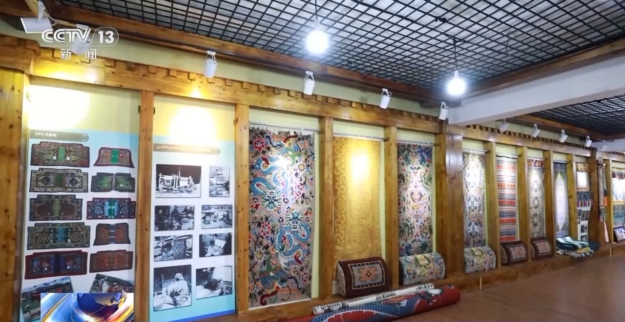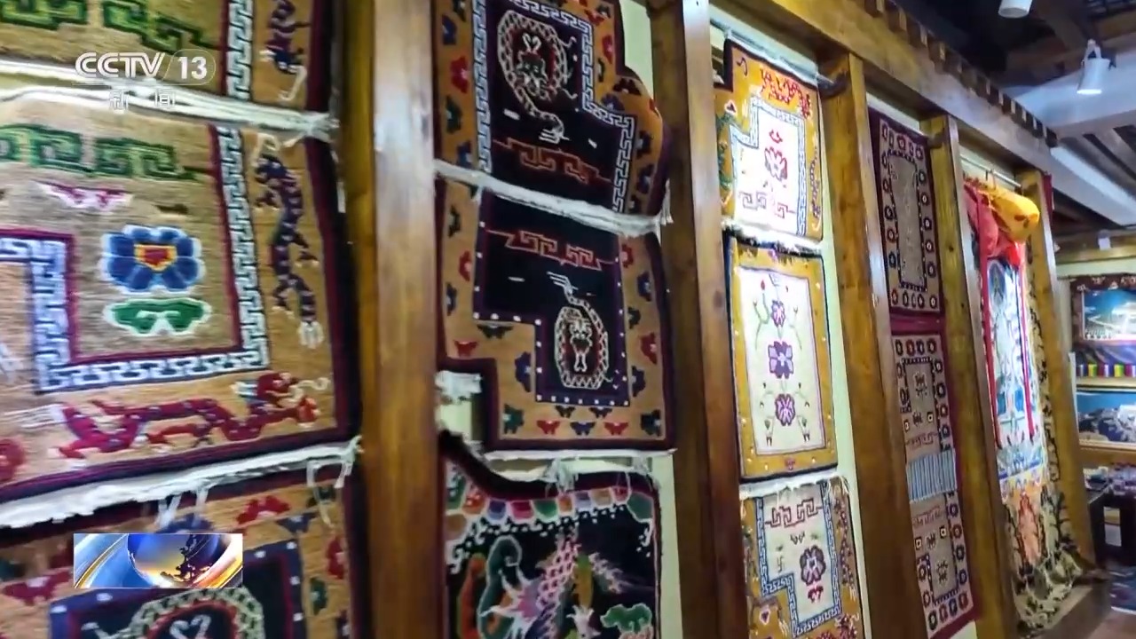 總臺央視記者 申楊:在這個(gè)藏毯陳列館,可以看到藏毯的前世今生。20世紀(jì)30年代到2010年時(shí)期藏毯的樣式,從顏色、造型、工藝上來講,變化并不大,真正發(fā)生變化是在2014年,藏毯的編織工藝有了新的突破。這幅布達(dá)拉宮立體編織圖,它是根據(jù)照片編織出來的,這種立體藏毯是怎么織出來的?