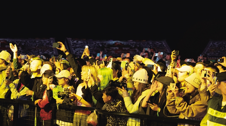 夕陽為舞臺(tái)鍍上金邊時(shí),ONER男團(tuán)的表演引粉絲尖叫,眾人舉相機(jī)記錄瞬間。夜幕降臨,疏星如碎鉆閃爍,帶著涼意的山風(fēng)擋不住熱情——觀眾裹衣依偎,隨音符搖擺。線上舞臺(tái)同步直播,Easy、登真尼珍等藝人讓場外樂迷共享盛宴。