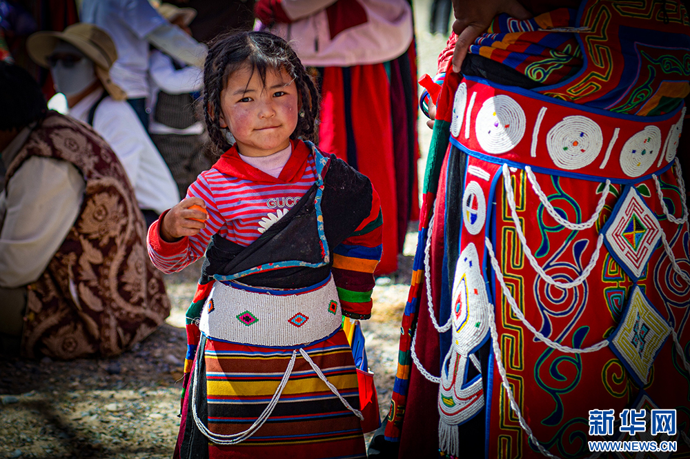 身穿自治區(qū)級非物質(zhì)文化遺產(chǎn)“森郭服飾”的小女孩(6月21日攝)。新華網(wǎng) 旦增努布 攝