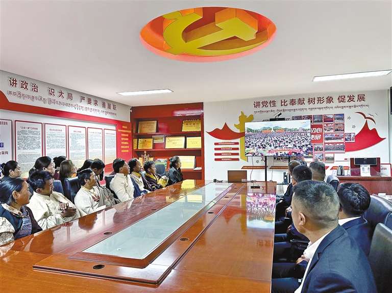 日喀則市謝通門(mén)縣仁欽則鄉(xiāng)倫珠孜村的村民們集中觀看了現(xiàn)場(chǎng)直播,現(xiàn)場(chǎng)不時(shí)傳出熱烈掌聲。老黨員仁增多吉感慨萬(wàn)千:“我深切體會(huì)到了沒(méi)有中國(guó)共產(chǎn)黨就沒(méi)有社會(huì)主義新西藏,就沒(méi)有我們今天的幸福生活。我將始終維護(hù)祖國(guó)統(tǒng)一,加強(qiáng)民族團(tuán)結(jié),堅(jiān)定不移聽(tīng)黨話、矢志不渝跟黨走?!?/p>