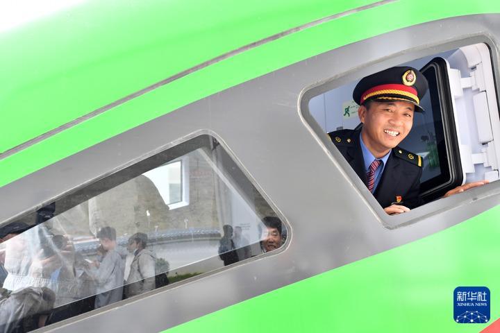 西藏第一代藏族“復(fù)興號(hào)”列車司機(jī)斯朗旺扎。(2021年6月21日攝)