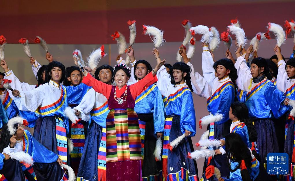 藏族女高音歌唱家才旦卓瑪在第四屆藏博會(huì)開幕式文藝演出中(2018年9月7日攝)。