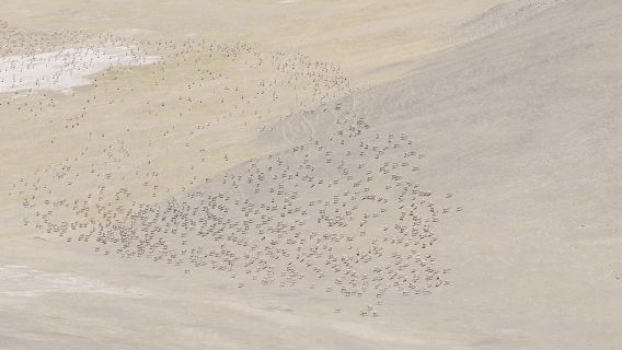 羌塘國家級自然保護(hù)區(qū)中正在遷徙的龐大藏羚羊群。