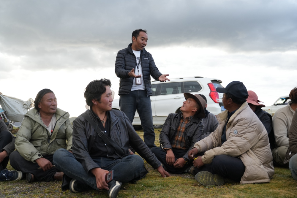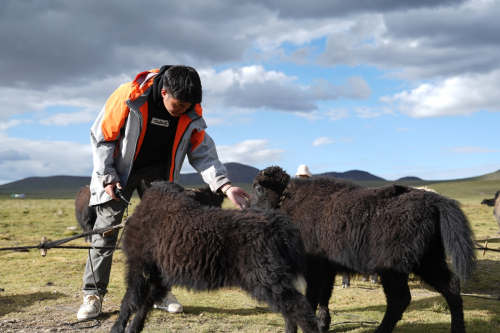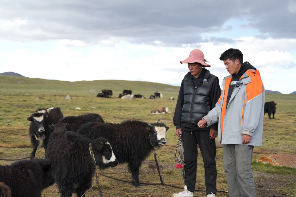 圖為巴登求扎團(tuán)隊工作人員查看牧區(qū)牦牛情況。何欣然攝