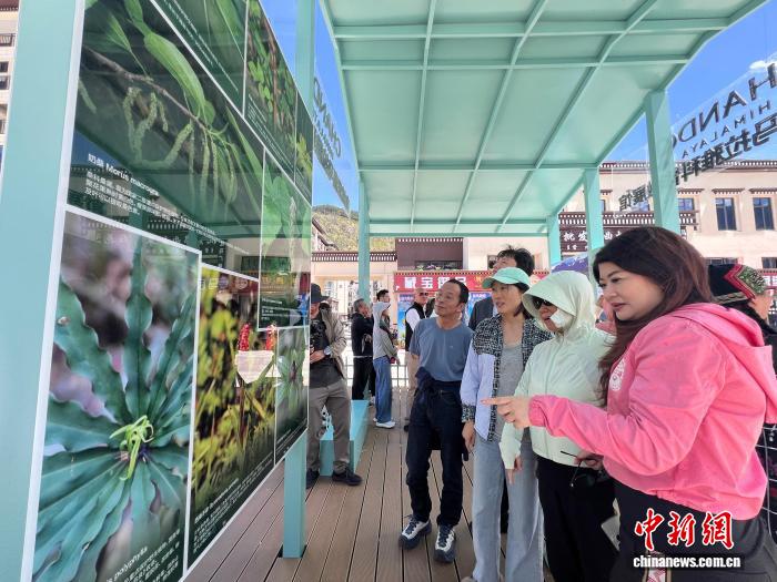 9月5日下午,參與項(xiàng)目啟動(dòng)的部分專(zhuān)家學(xué)者和媒體代表,參觀林芝市生物多樣性科普宣傳微展覽。潘旭臨 攝