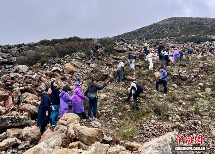 圖為項(xiàng)目啟動(dòng)當(dāng)天,50余名專(zhuān)家學(xué)者、媒體代表開(kāi)展色季拉山生物多樣性科考活動(dòng)。潘旭臨 攝