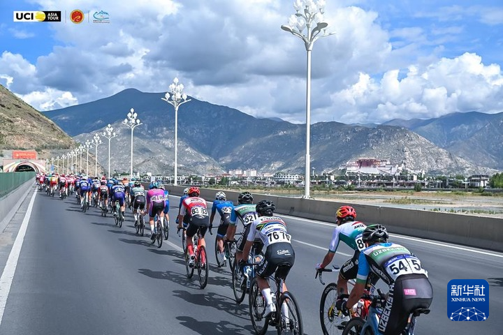 2025中國(guó)西藏第六屆跨喜馬拉雅國(guó)際公路自行車極限賽,選手在第三階段拉薩站比賽中。(主辦方供圖)