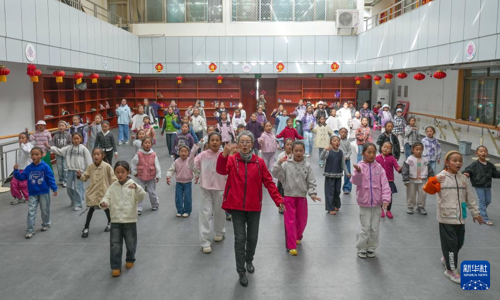 9月14日,巴桑老師在西藏自治區(qū)群藝館帶領(lǐng)孩子們學習藏戲表演。新華社記者 晉美多吉 攝