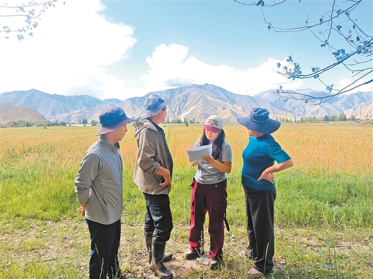“五彩梅朵·曲水心橋”志愿服務(wù)隊(duì)耐心為村民組長講解政策。