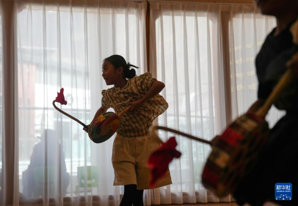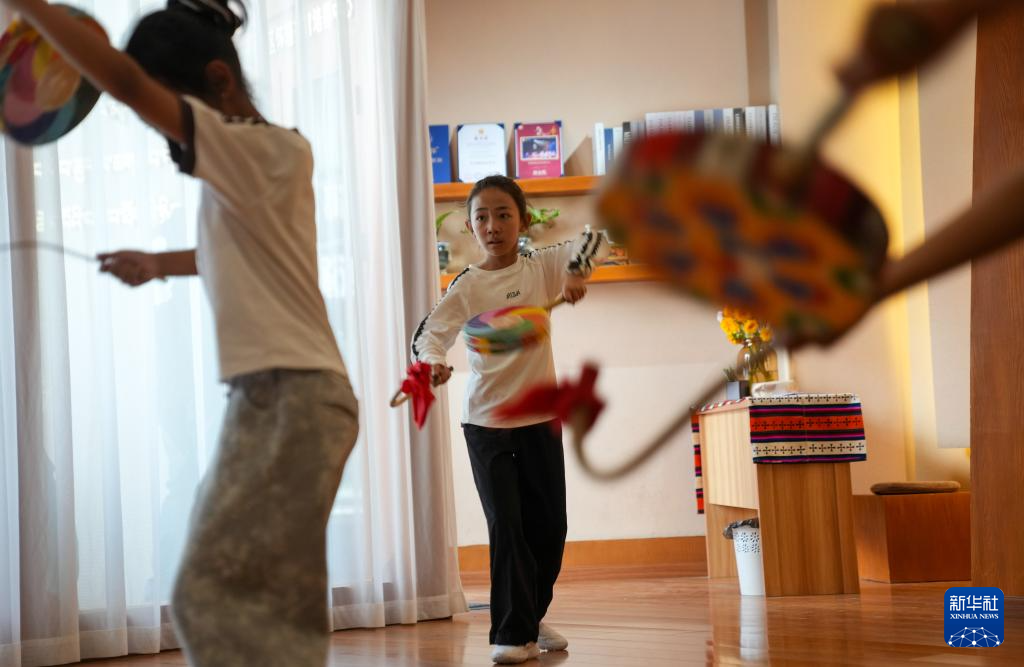9月13日,在拉薩市塔耶梅朵美育培養(yǎng)中心,孩子們?cè)诰毩?xí)熱巴舞。新華社記者 晉美多吉 攝