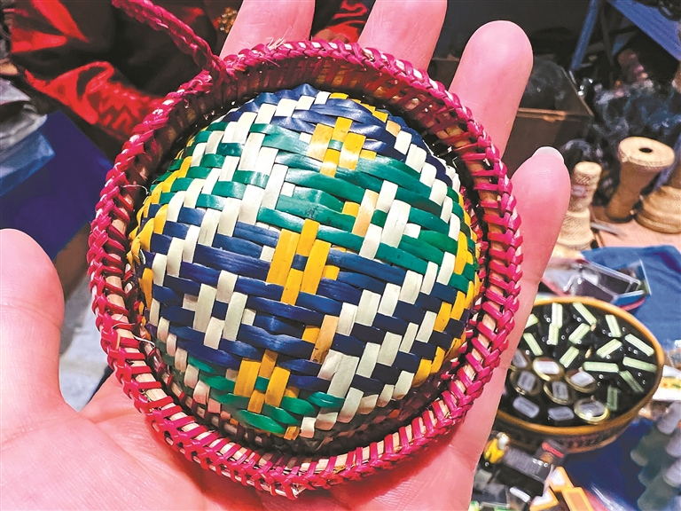 圖為市民購(gòu)買不丹竹編容器。記者 央金 攝
