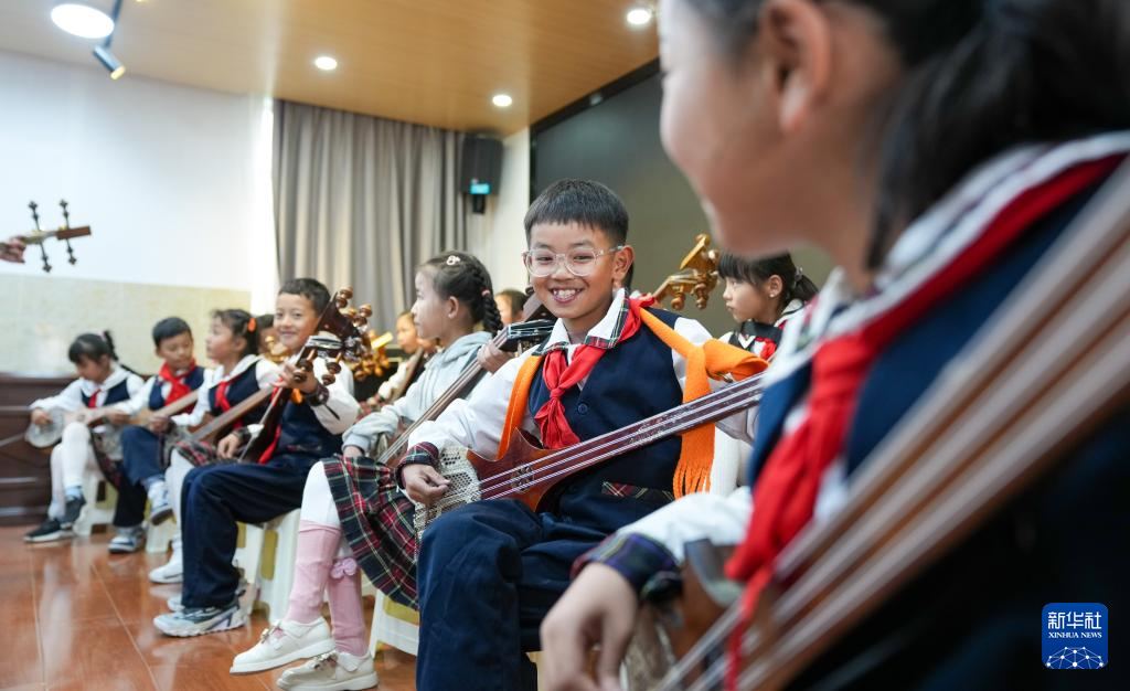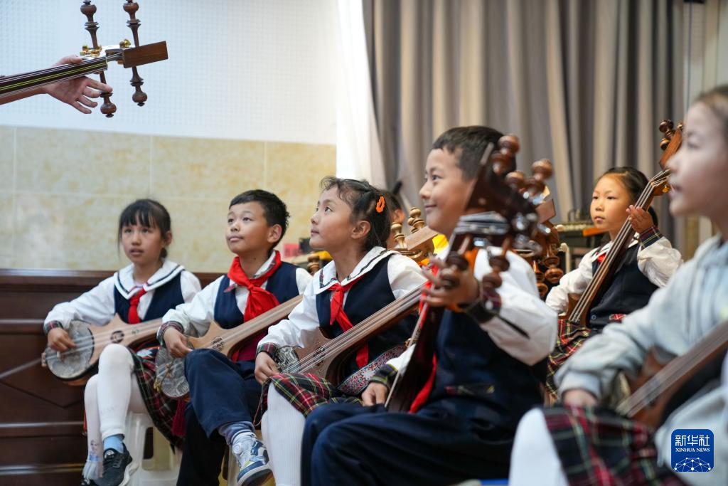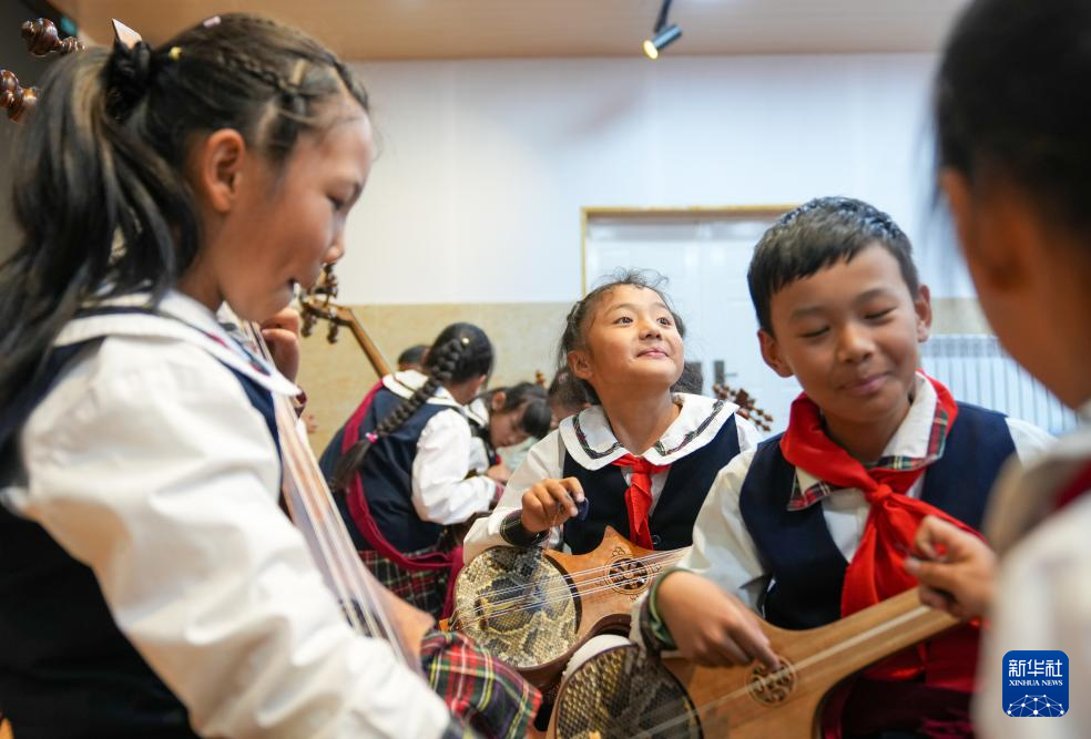 9月11日,在拉薩市實驗小學(xué),孩子們在彈奏扎念琴。新華社記者 晉美多吉 攝