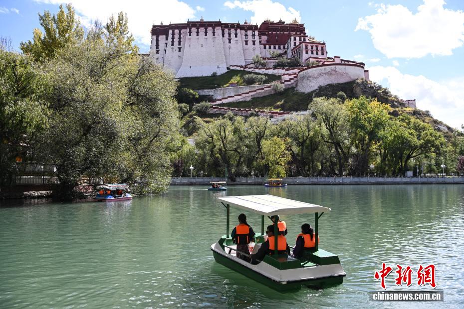 10月6日,西藏拉薩市宗角祿康公園人氣爆棚。人工湖畔游船碼頭前,游客有序排隊登船,各色游船在碧波上緩緩前行,與岸邊的秋景、遠(yuǎn)處的布達(dá)拉宮相映成趣。據(jù)悉,國慶假期,游船接待量較平日增長近三成,成為市民游客親近自然、歡度國慶的熱門選擇。中新社記者 貢嘎來松 攝