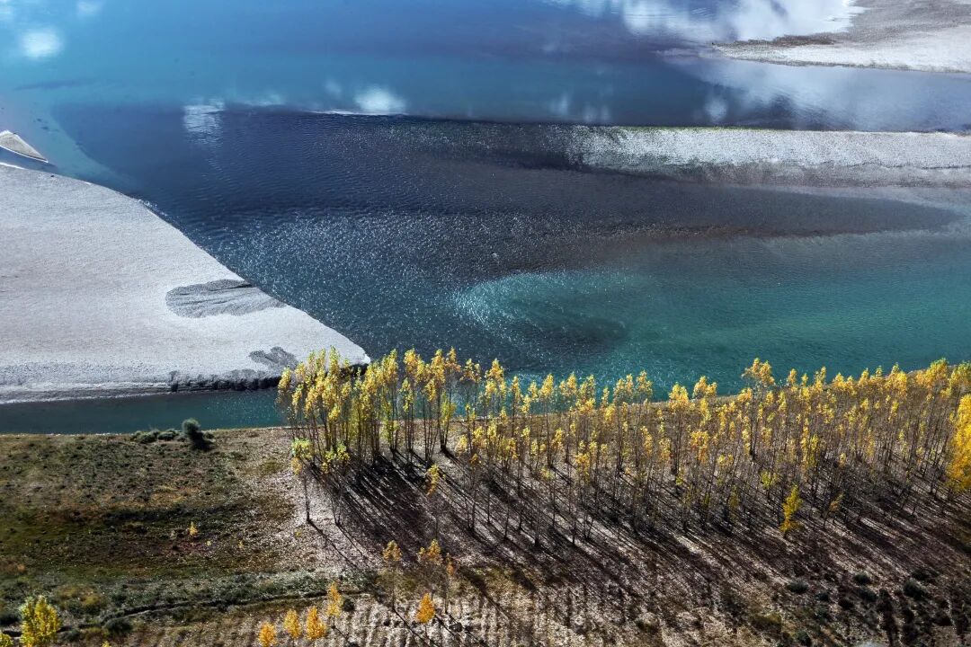 澄澈河水映著金黃楊樹(shù)林