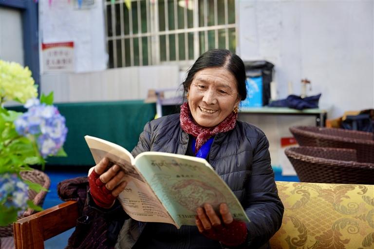 62歲的巴桑卓瑪也在課堂里找回了新的生活樂趣?!耙郧拔也蛔R字,來這兒一年多,不僅學(xué)會了讀和寫,還學(xué)到了很多新知識。”巴桑卓瑪說,“現(xiàn)在生活好了,就想多學(xué)些新東西,每天都盼著來教室,根本不想待在家里。當(dāng)初也是聽大家都說這里好,我才來的,現(xiàn)在覺得來對了!”