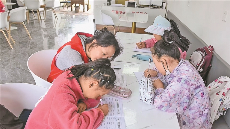 蔡公堂街道白定村黨委開展的托班服務(wù)上,孩子們在認(rèn)真寫作業(yè)。