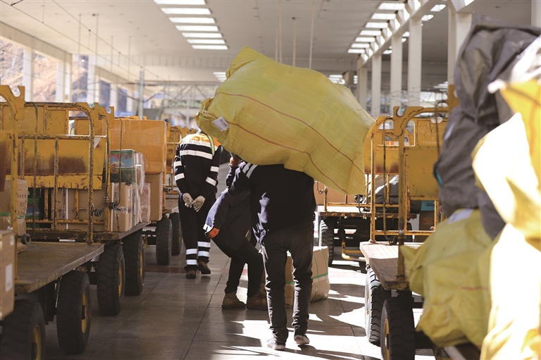 針對(duì)“雙十一”期間到達(dá)貨物量激增的實(shí)際,拉薩火車站行包班組迅速組織卸車骨干力量,全面推行“隨到、隨卸、隨揀、隨取”作業(yè)機(jī)制。搬運(yùn)過程中堅(jiān)持“輕拿輕放”,裝運(yùn)環(huán)節(jié)做到“正向擺放、有序清點(diǎn)、重點(diǎn)交接”,最大限度降低貨損風(fēng)險(xiǎn)。客運(yùn)車間依托列車到站終端系統(tǒng),實(shí)時(shí)掌握列車動(dòng)態(tài)及站臺(tái)變更信息,實(shí)現(xiàn)“即到、即卸、即裝、即運(yùn)”,讓快件在站內(nèi)停留時(shí)間壓縮至最短,跑出高原物流“加速度”。