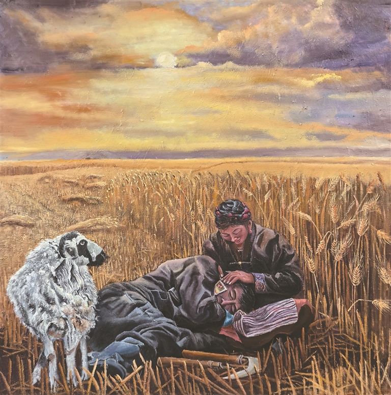 圖為鄒文江油畫作品《田野間的勞作時(shí)光》(局部)。