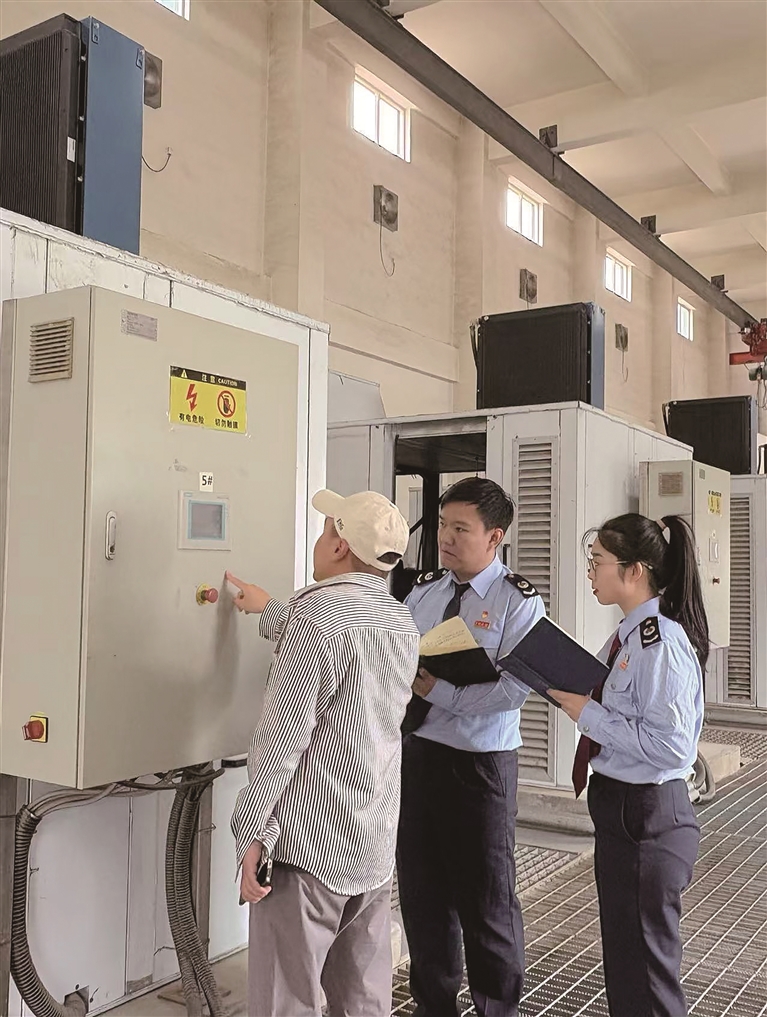 稅務(wù)干部在青稞啤酒廠房調(diào)研。圖由拉薩經(jīng)濟(jì)技術(shù)開發(fā)區(qū)稅務(wù)局提供