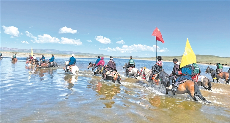 圖為三江源國家公園生態(tài)管護(hù)員在巡護(hù)途中。
