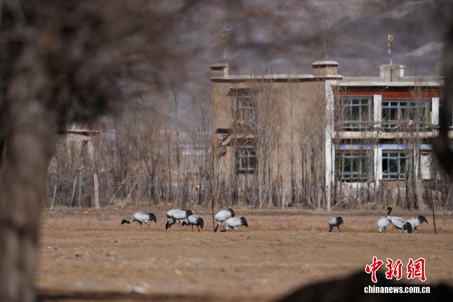 11月26日,位于西藏自治區(qū)拉薩市林周縣黑頸鶴自然保護(hù)區(qū)內(nèi),大批越冬黑頸鶴現(xiàn)身卡孜水庫(kù)及田間地頭,悠閑覓食、嬉戲。這些遠(yuǎn)道而來(lái)的黑頸鶴,將在此棲息至次年三四月份。黑頸鶴為中國(guó)國(guó)家一級(jí)保護(hù)動(dòng)物,也是唯一在高原生活、繁殖的鶴類。近年來(lái),隨著當(dāng)?shù)厣鷳B(tài)保護(hù)力度持續(xù)加大,前往林周縣越冬的黑頸鶴等候鳥數(shù)量逐年增多。圖為黑頸鶴在林周縣境內(nèi)的農(nóng)田里覓食、嬉戲。貢確 攝