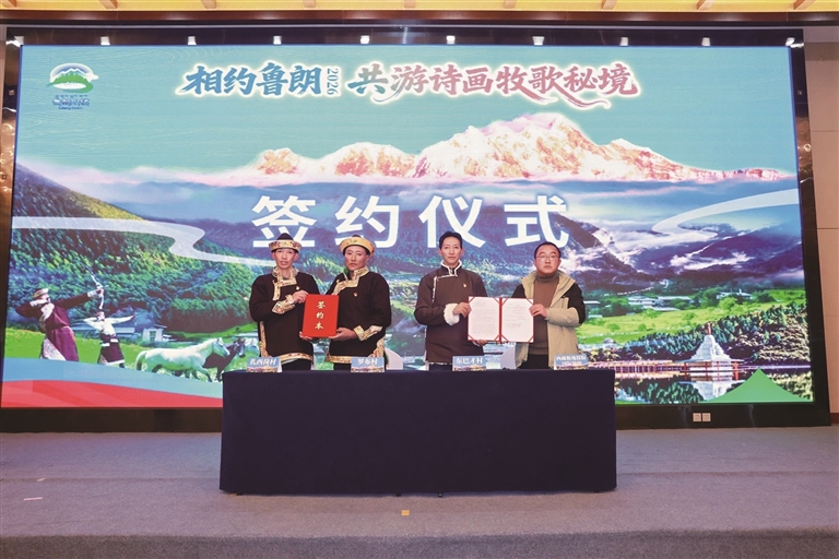 現(xiàn)場,還舉行了簽約儀式,魯朗東巴才村、羅布村、扎西崗村村委會代表與拉薩多家優(yōu)質(zhì)旅行社簽訂合作意向協(xié)議。雙方圍繞文旅深度融合發(fā)展趨勢,聚焦沉浸式體驗(yàn)、定制化旅游等細(xì)分領(lǐng)域展開深入交流,達(dá)成多項(xiàng)合作共識,將進(jìn)一步拓寬魯朗景區(qū)的客源渠道,提升品牌影響力。
