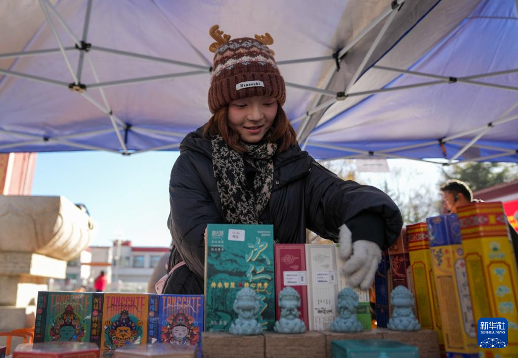 12月10日,商戶(hù)在拉薩市宗角祿康公園的供銷(xiāo)大集上整理商品。新華社記者 晉美多吉 攝