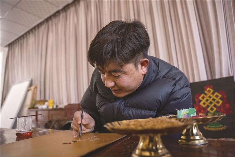 仁青多吉告訴記者,盡管因缺乏專業(yè)宣傳渠道,導(dǎo)致很多人未能知曉這份獨(dú)特的手藝,但自己從未想過放棄,這份堅(jiān)持源于純粹的熱愛。作為唐卡畫師,仁青多吉將繪制唐卡的專注,悉數(shù)傾注于青稞創(chuàng)作中?!安还苁钱嬏瓶ㄟ€是粘青稞,都要沉下心來?!彼寡?,這個(gè)副業(yè)賺不了多少錢,但傳承傳統(tǒng)技藝、宣傳家鄉(xiāng)文化的初心,讓他甘愿為熱愛買單,“哪怕不掙錢,我也想一直做下去?!?/p>