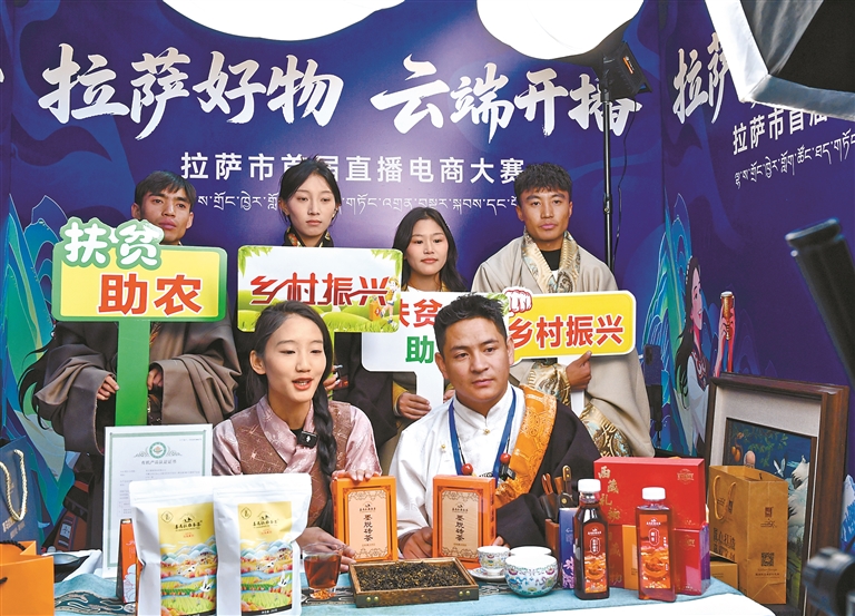12月20日,由拉薩市商務局主辦,以“拉薩好物·云端開播”為主題的拉薩市首屆直播電商大賽決賽暨頒獎儀式在拉薩王府井購物中心舉行。經(jīng)過前期初賽選拔、賽前調(diào)研學習和集中交流,晉級的20名參賽選手同臺競技,通過直播實戰(zhàn)比拼,集中展示直播電商能力與拉薩特色產(chǎn)品的市場潛力,為期16天的大賽圓滿收官。整個賽事周期內(nèi),初賽與決賽累計帶貨總額達861萬余元。