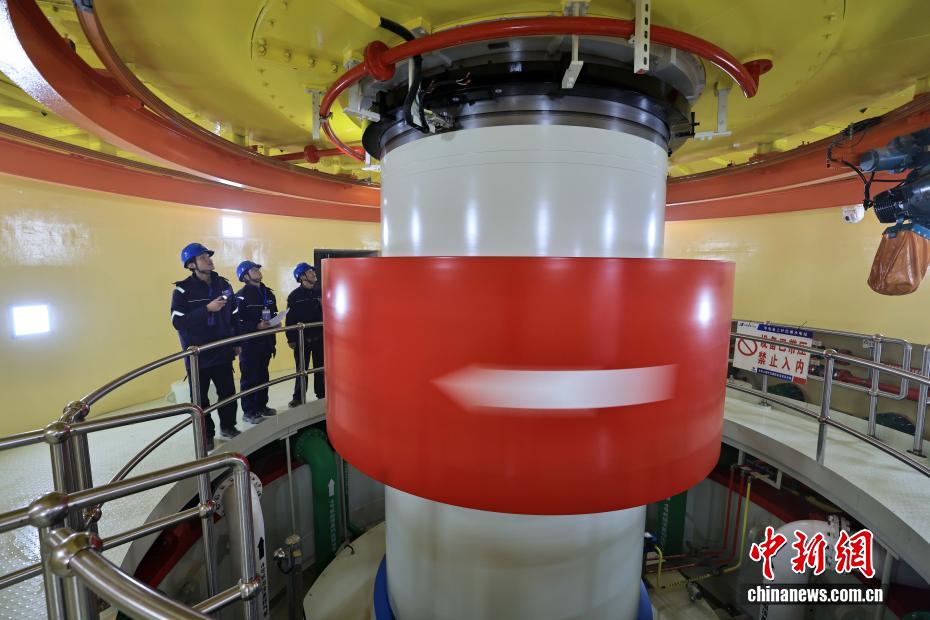 12月27日,中國在建海拔最高雙曲拱壩電站——葉巴灘水電站首批機(jī)組正式投產(chǎn)發(fā)電。葉巴灘水電站位于四川省甘孜州白玉縣與西藏自治區(qū)貢覺縣交界的金沙江干流上。水電站總裝機(jī)容量224萬千瓦,此次首批投產(chǎn)發(fā)電的機(jī)組為4號和3號機(jī)組。圖為12月25日,巡檢員在機(jī)組運(yùn)行水車室巡查。中新社記者 王磊 攝