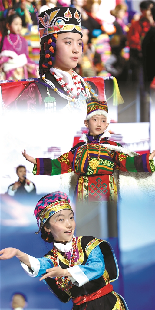 圖為拉薩少兒在西藏美術(shù)館進行服飾展演。