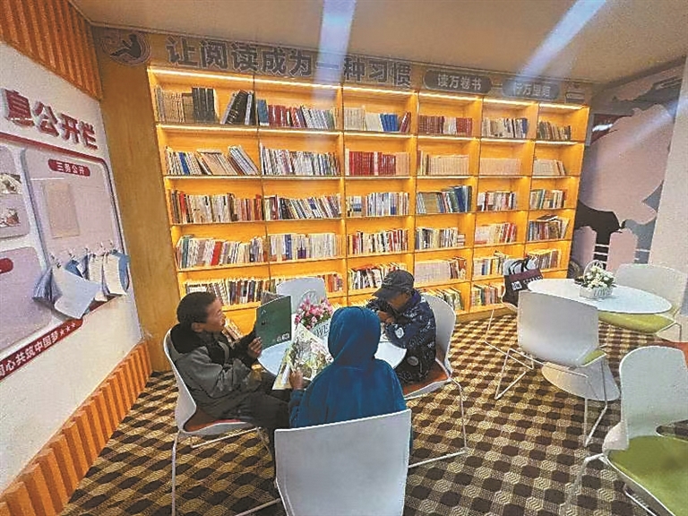 圖為在嘉黎縣阿扎鎮(zhèn)德吉、雅杰社區(qū)黨群活動中心牧家書屋,孩子們翻閱書籍。記者 汪純 攝