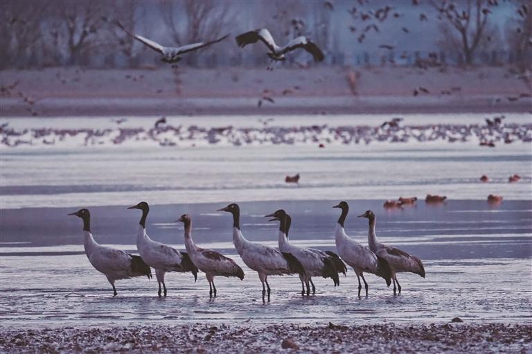 活動當(dāng)日,學(xué)員們在前黑頸鶴巡護員旦增的帶領(lǐng)下,深入卡孜水庫、虎頭山水庫等黑頸鶴核心棲息地,沉浸式體驗日常巡護工作,學(xué)習(xí)排查網(wǎng)圍欄安全隱患、監(jiān)測黑頸鶴覓食與健康狀況、投喂青稞等實操技能,直觀了解黑頸鶴生存與高原生態(tài)環(huán)境的緊密關(guān)聯(lián)。