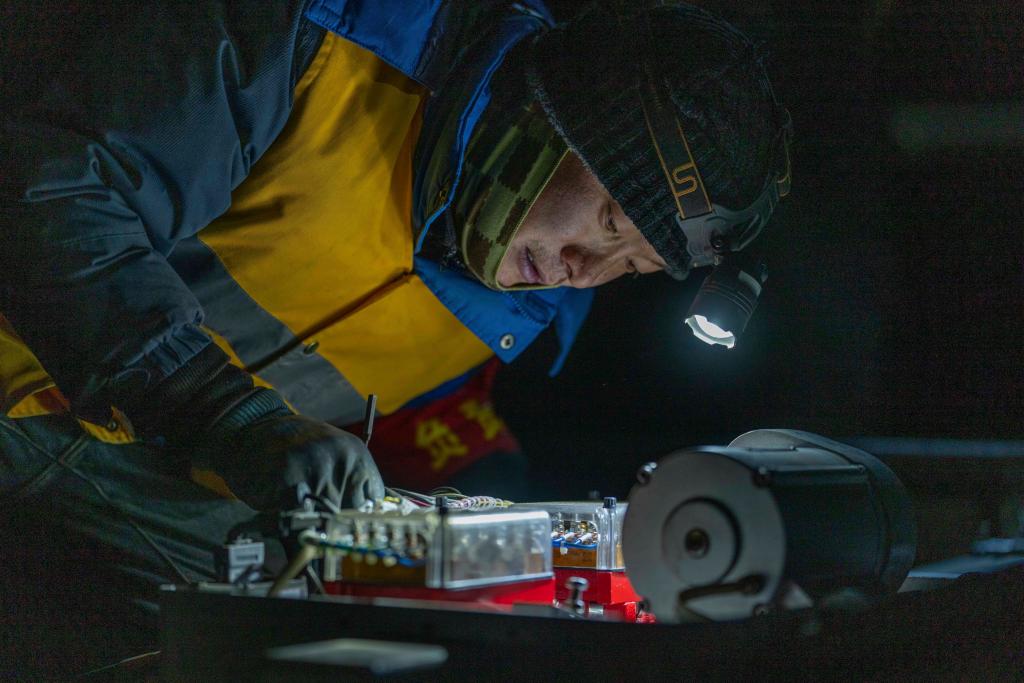 “先確認(rèn)斷路器狀態(tài)?!蓖醺簧攵自谒碗姸讼浜星?,凍得發(fā)紫的手緩緩打開(kāi)電纜盒。成格樂(lè)的頭燈照亮箱盒內(nèi)密密麻麻的端子排,他用內(nèi)六角扳手將早已斷裂的小枕木和銹蝕的過(guò)軌卡扣逐一取下。王富生隨即將新的箱盒引接線安裝固定好。