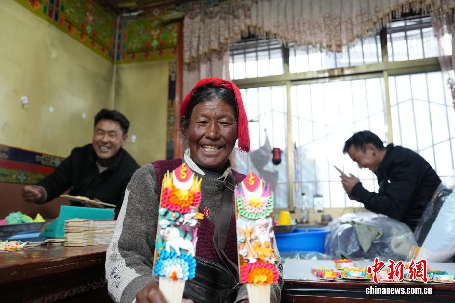2月4日,隨著藏歷新年臨近,拉薩街頭年味漸濃,年貨市場上的“孜扎”迎來熱銷。酥油花藏語稱“孜扎”,是藏歷新年吉祥物切瑪盒的重要組件,也是藏族民眾家中必備的年貨。酥油花以酥油為主要原料,由匠人純手工捏制而成,造型涵蓋佛像、人物、花卉樹木、飛禽走獸等,常見圖案包含吉祥八寶、和諧四瑞、長壽圖等,承載著藏族民眾對新年平安吉祥、萬事順遂的美好祈愿。圖為手工藝人展示制作完成的酥油花。貢確 攝