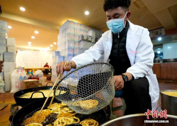 卡塞是一種用白面、酥油等原料制作的油炸面,是藏族家庭過年必不可少的年貨。制作卡塞時,將和好的面切片,捏出條形、方形、蝴蝶形等不同形狀,在油鍋里炸至金黃。隨后再撒上白糖,整齊擺放。香甜可口、樣式精美的卡塞吸引著市民前來選購。