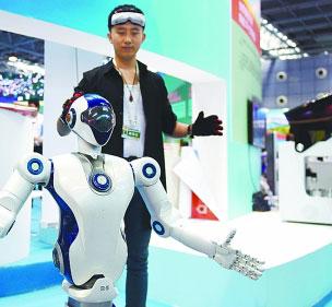 在全國大眾創(chuàng)業(yè)萬眾創(chuàng)新活動周北京會場主題展上,工作人員在展示一款仿生機器人。新華社發(fā)