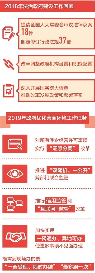 報(bào)告:推進(jìn)法治政府建設(shè)和治理創(chuàng)新,保持社會(huì)和諧穩(wěn)定。提請(qǐng)全國人大常委會(huì)審議法律議案18件,制定修訂行政法規(guī)37部。改革調(diào)整政府機(jī)構(gòu)設(shè)置和職能配置。深入開展國務(wù)院大督查,推動(dòng)改革發(fā)展政策和部署落實(shí)。發(fā)揮審計(jì)監(jiān)督作用。改革完善城鄉(xiāng)基層治理。創(chuàng)新信訪工作方式。