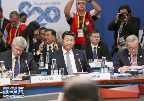 2014年11月15日,國家主席習(xí)近平出席在澳大利亞布里斯班舉行的二十國集團(tuán)領(lǐng)導(dǎo)人第九次峰會,并在第一階段會議上作了題為《推動(dòng)創(chuàng)新發(fā)展 實(shí)現(xiàn)聯(lián)動(dòng)增長》的重要發(fā)言。