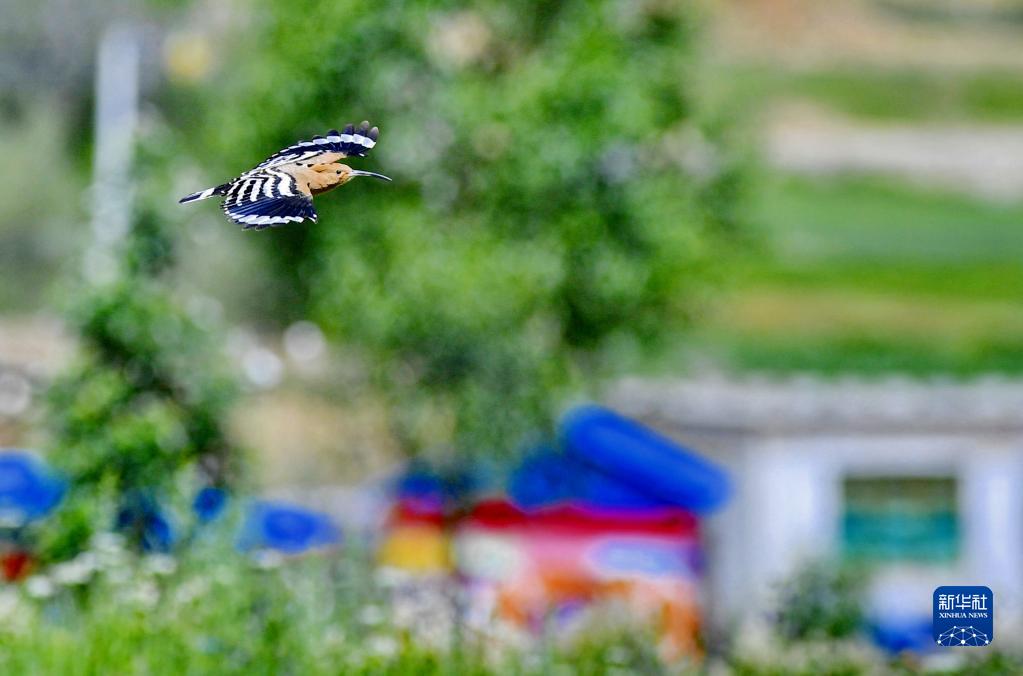 戴勝鳥在白定村上空飛翔(7月1日攝)。新華社記者 張汝鋒 攝