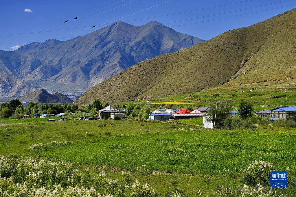 夏季,位于西藏拉薩東郊的蔡公堂街道白定村溪流淙淙,鳥語花香,風景如畫。