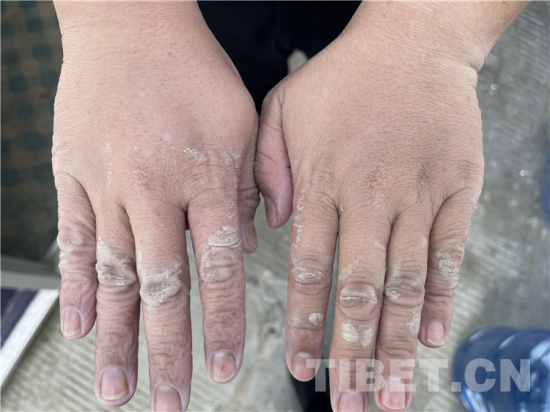 摘下戴了十幾個小時的手套,每根手指都被捂皺變形,關(guān)節(jié)處的皮膚泛白腫脹——看到日喀則邊境管理支隊吉隆邊境派出所民警桂浩的手部照片,讓人不禁淚目?! ?/p>