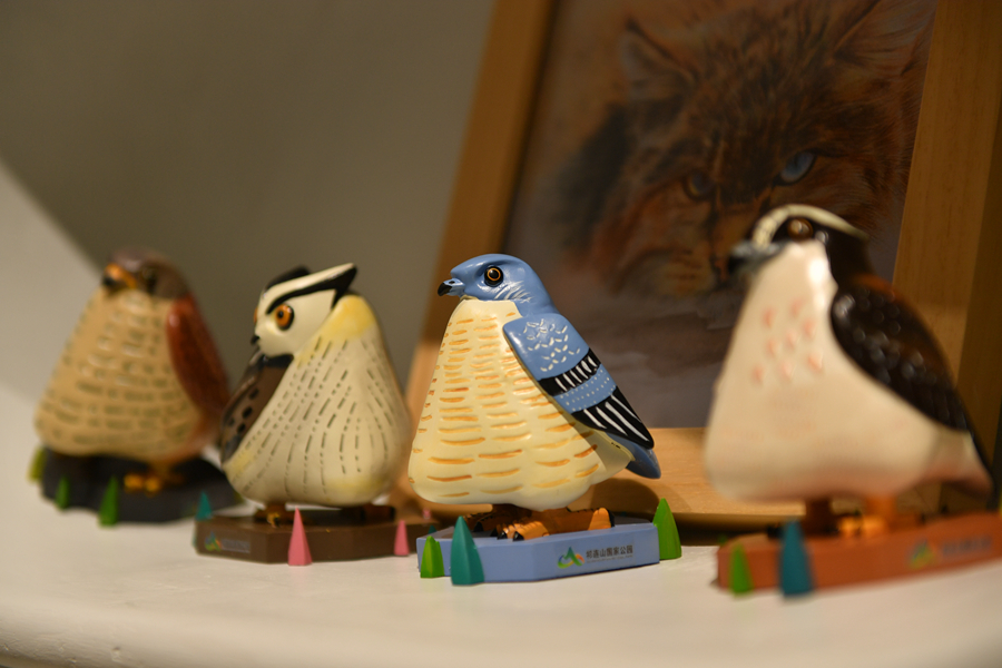 圖為祁連山國家公園青海片區(qū)展陳中心內(nèi)展出的特色文創(chuàng)產(chǎn)品。