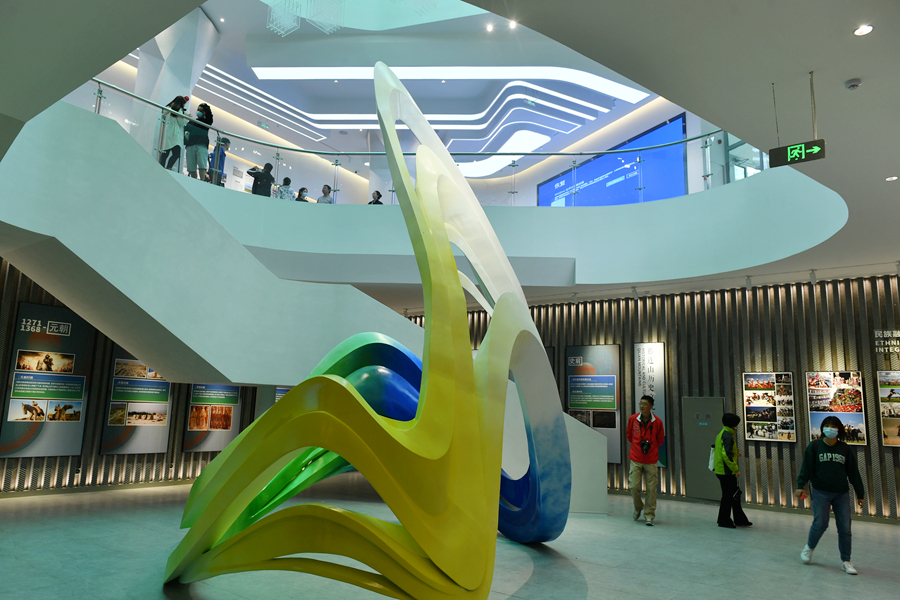 圖為祁連山國家公園青海片區(qū)展陳中心內(nèi)的多元文化板塊。