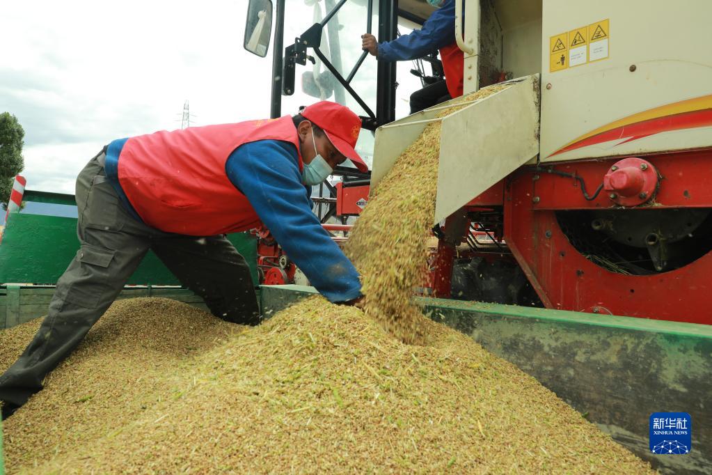 目前,西藏各地進入秋收時節(jié)。西藏拉薩市墨竹工卡縣農(nóng)民在積極防疫的同時,抓緊收割青稞,確保顆粒歸倉。
