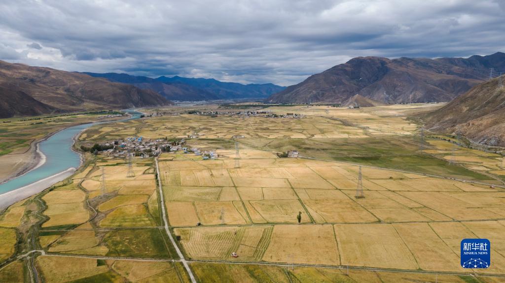 西藏拉薩市墨竹工卡縣唐加鄉(xiāng)的青稞田(8月27日攝)。新華社發(fā)(洛克攝)
